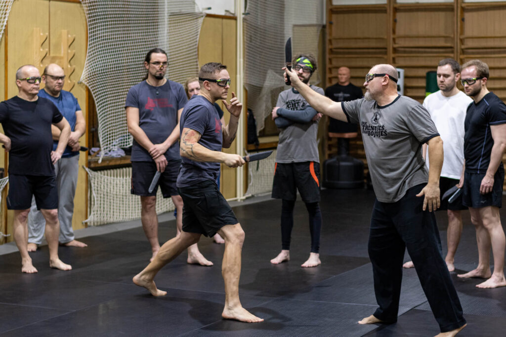 Na našich pravidelných skupinových trénincích se zaměřujeme na praktické dovednosti reálné sebeobrany a boje zblízka. Vyučujeme techniky boje jak beze zbraně, tak i se zbraněmi, podle principů reality based self defence (sebeobrana založená na reálných možnostech a podmínkách boje) s cílem zvýšit úroveň osobní ochrany jednotlivce.